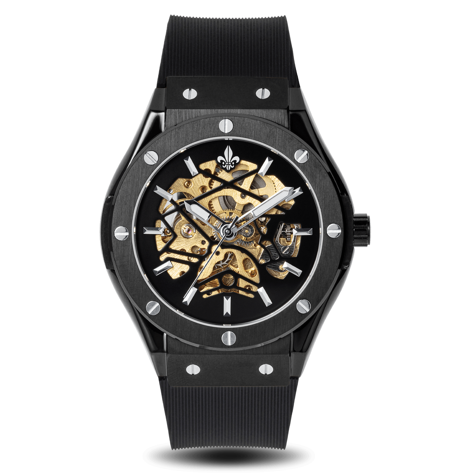 Prague Skeleton Automatic Deluxe - Black + Black Link Strap