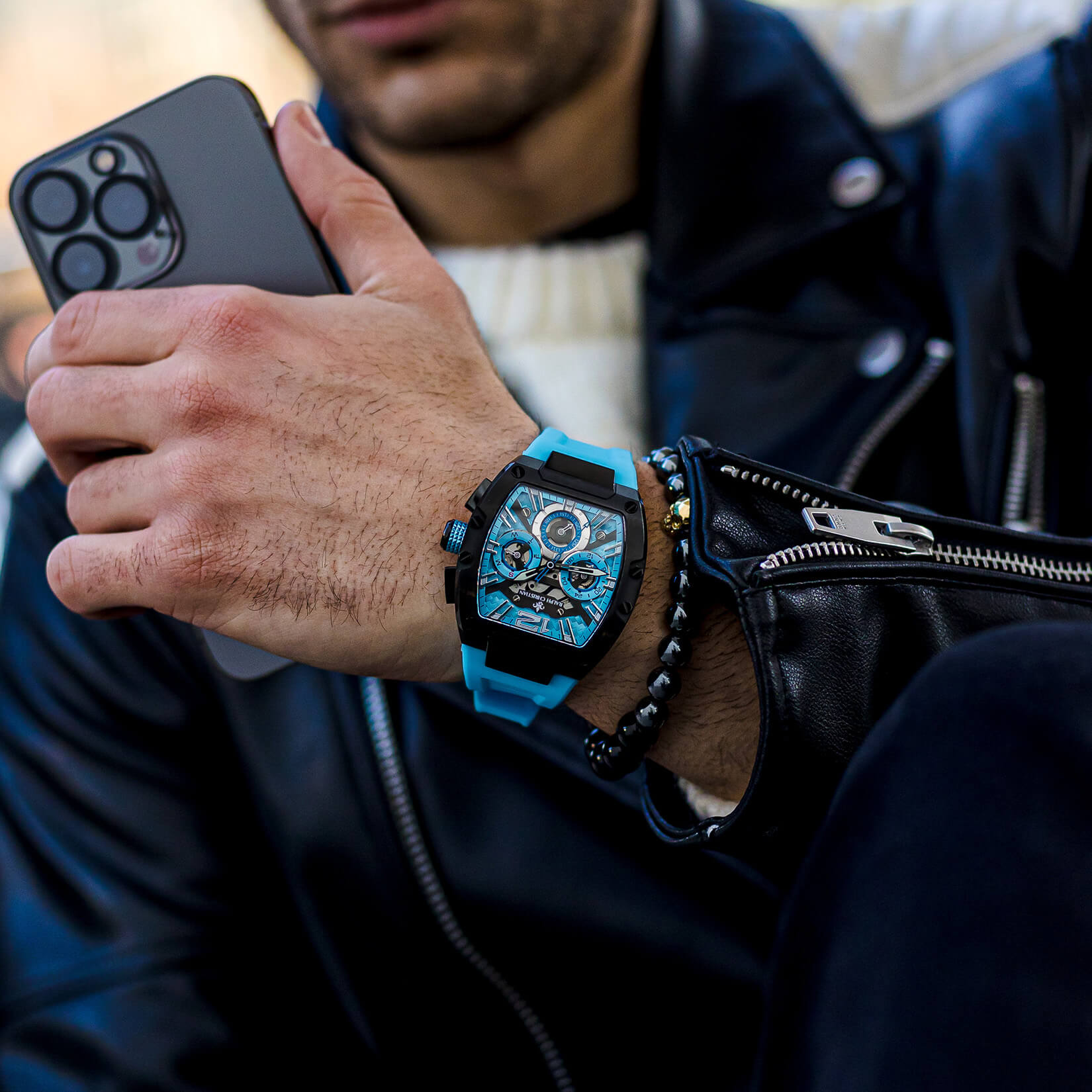 | Dial Feature: | DIAL | Part Skeletonized, Multi Layered Black & Arctic Blue |