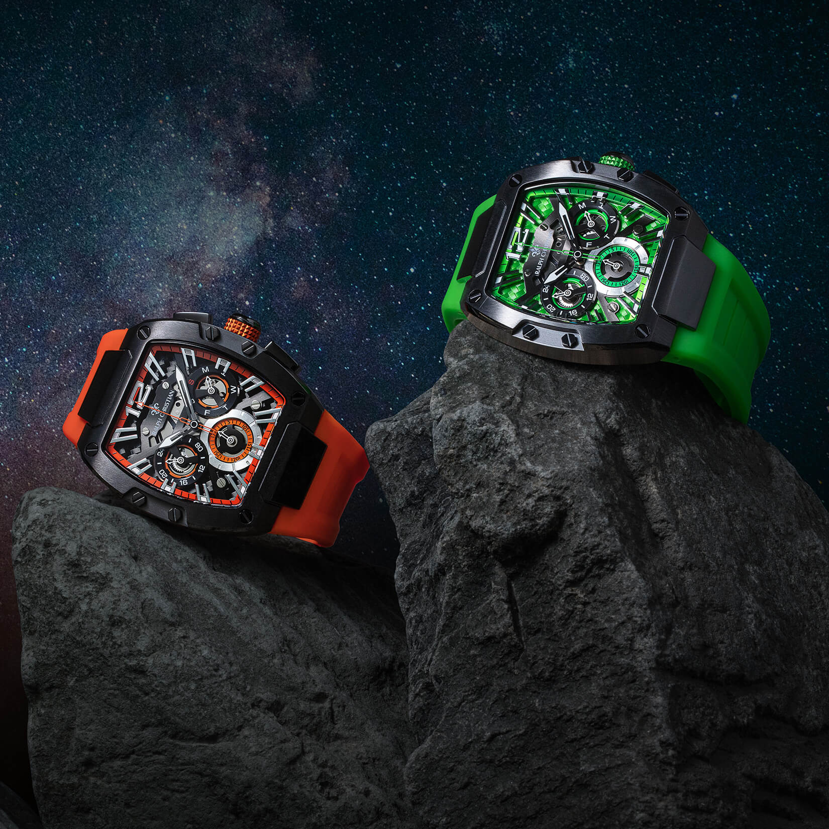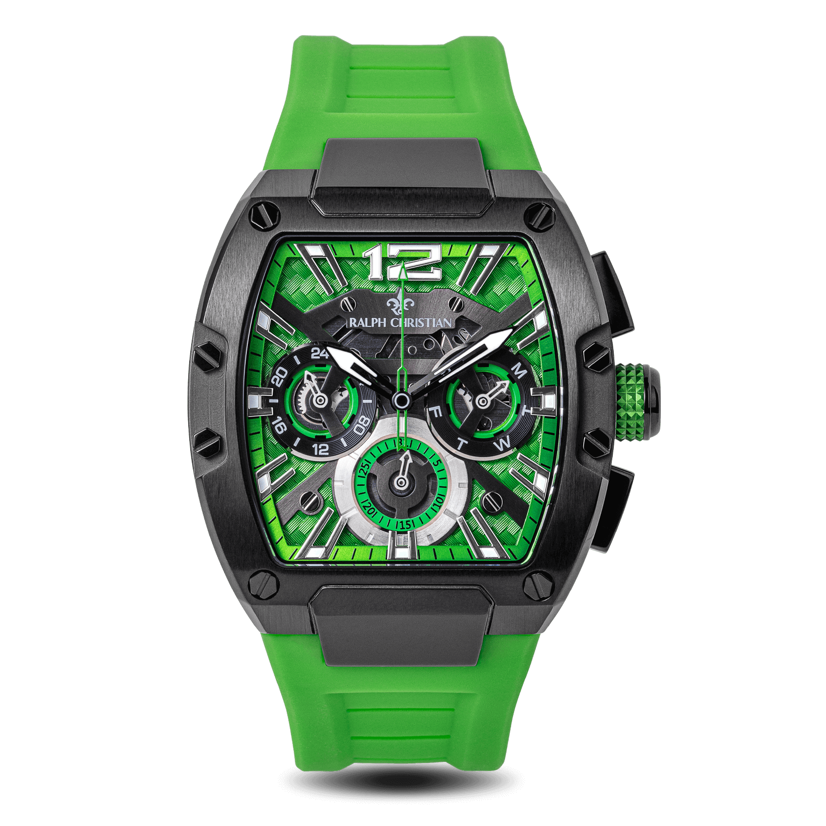 | Dial Feature: | DIAL | Part Skeletonized, Multi Layered Black & Lime Green |